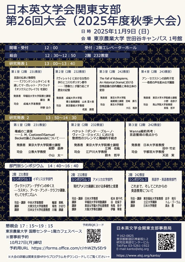 日本英文学会関東支部第26回大会(2025年度秋季大会)